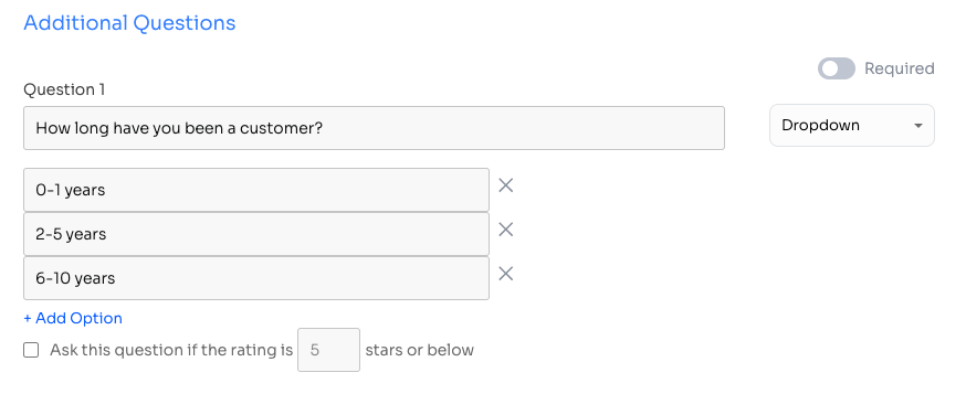 If you enable the Google Review flow based on a star-rating, we will bypass asking for specific written feedback for the respondents that leave a high-star review and direct them right to your Google Business page to leave a review— this way, they will not have to write out multiple reviews.