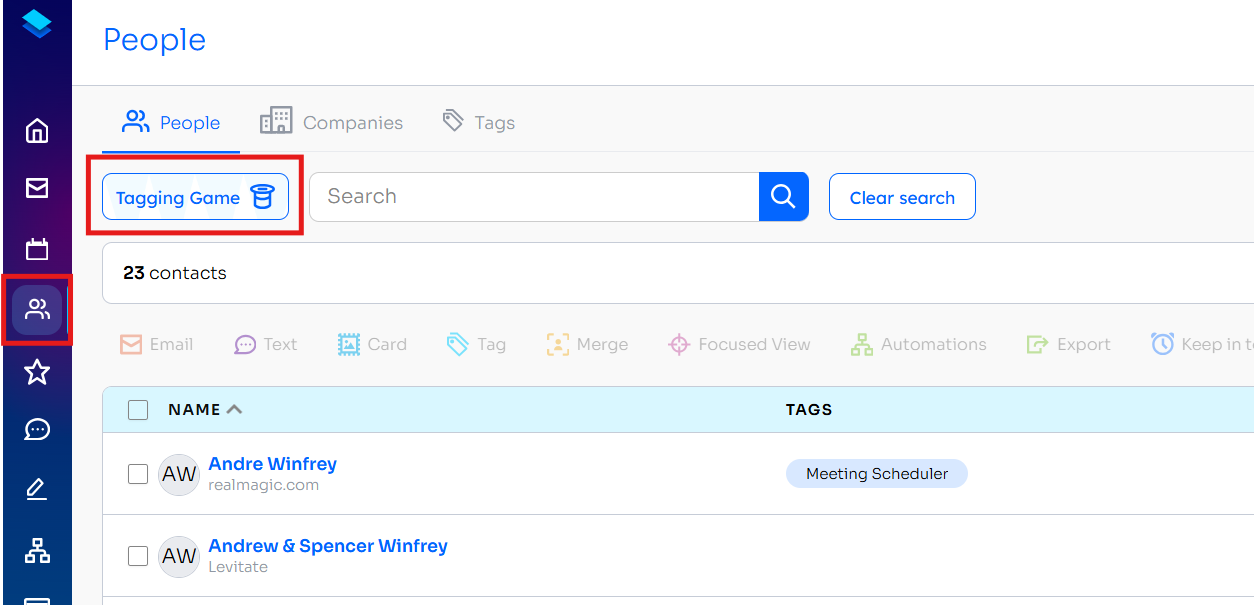 Q: How do I bulk-add tags to contacts missing them? A: Use the Tagging Game for individual review, or create a Smart View to identify the contacts, select them, and use bulk actions to add tags to multiple contacts at once.