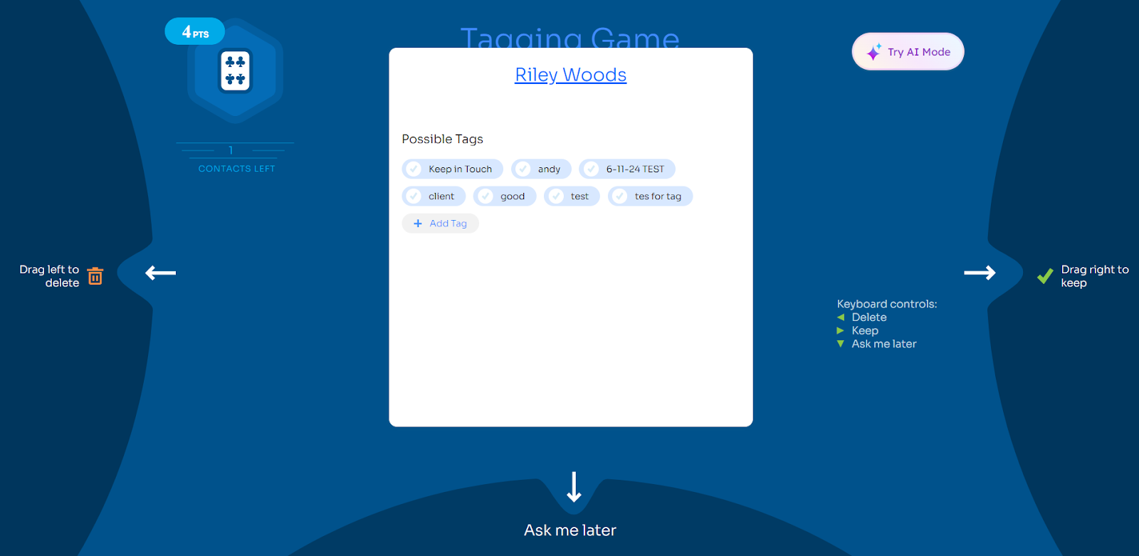 - Click the "Tagging Game" button in the upper right