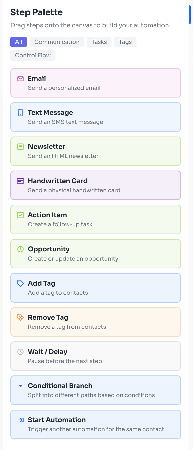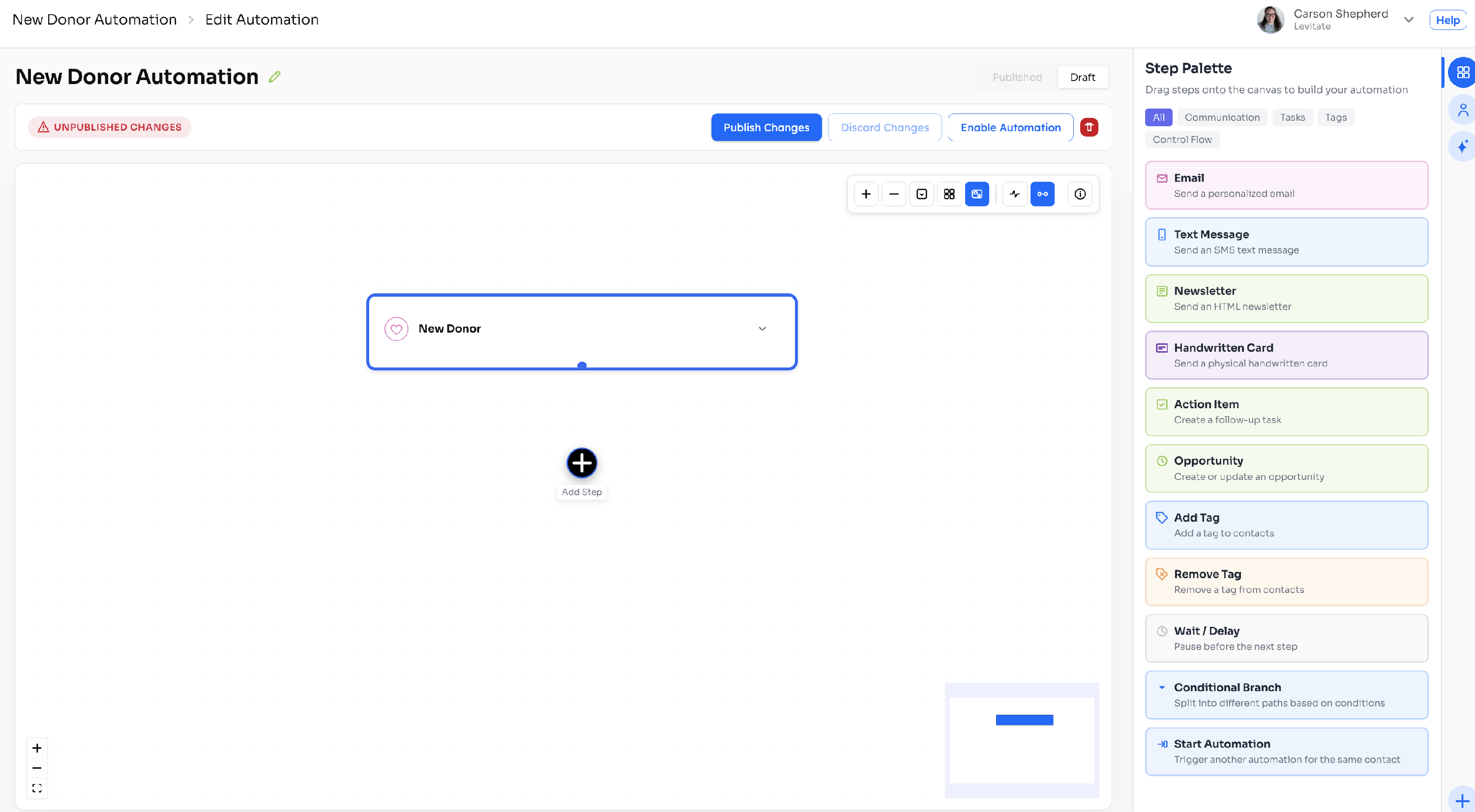 For our Non-Profit users who are bringing in donor and donation data, be it through DonorPerfect, a Zap connected to something like Stripe, or just through spreadsheet import, a New Donor automation can be kicked off.