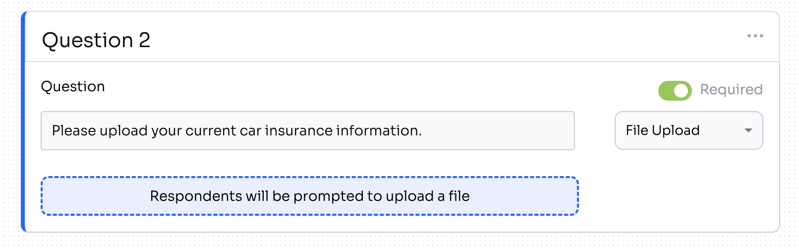Required—using the green toggle determines whether the question is required on the survey.