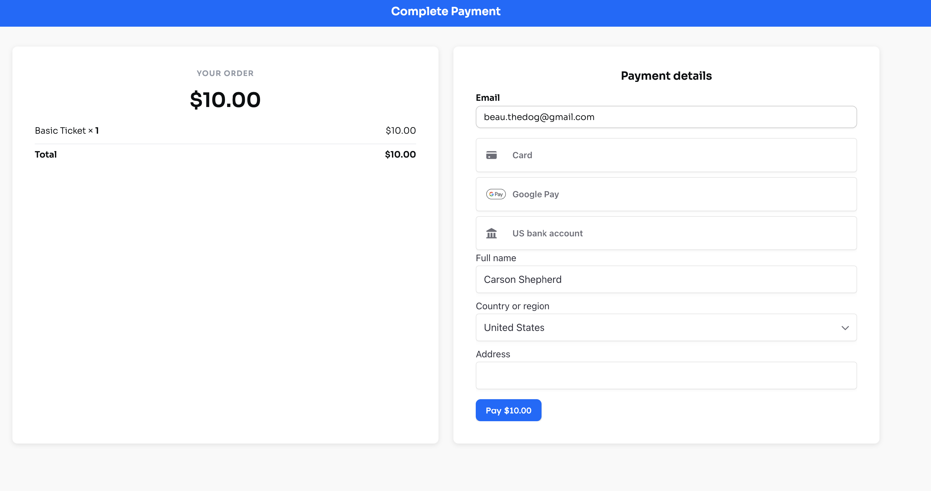 When entering details, they'll also see a new Cost field and be prompted to pay when clicking RSVP. Each plus one added will prompt a ticket fee when clicking RSVP.