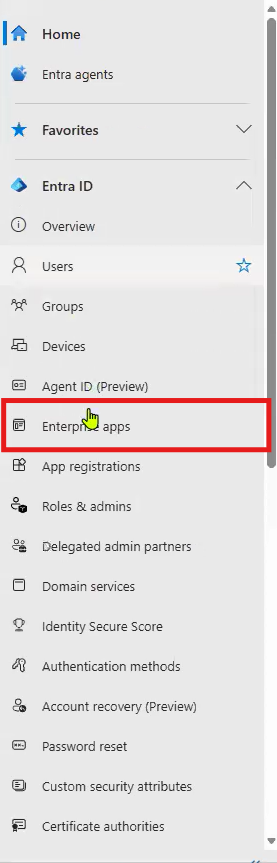 Next, click on Enterprise apps on the left side of the screen.