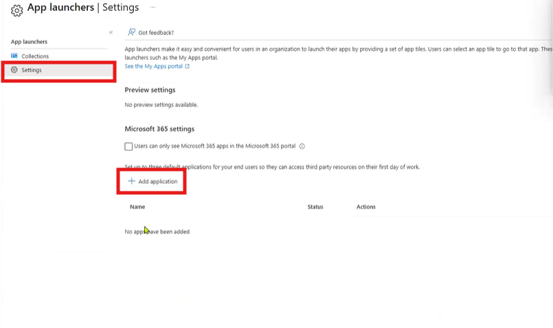 From there, click App Launchers > Settings > + Add application
