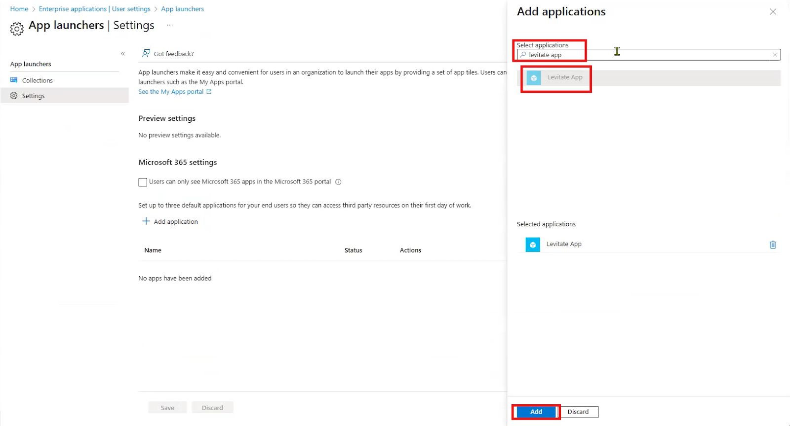Next, search for Levitate App, click on the pop-up, and click Add at the bottom of the window.