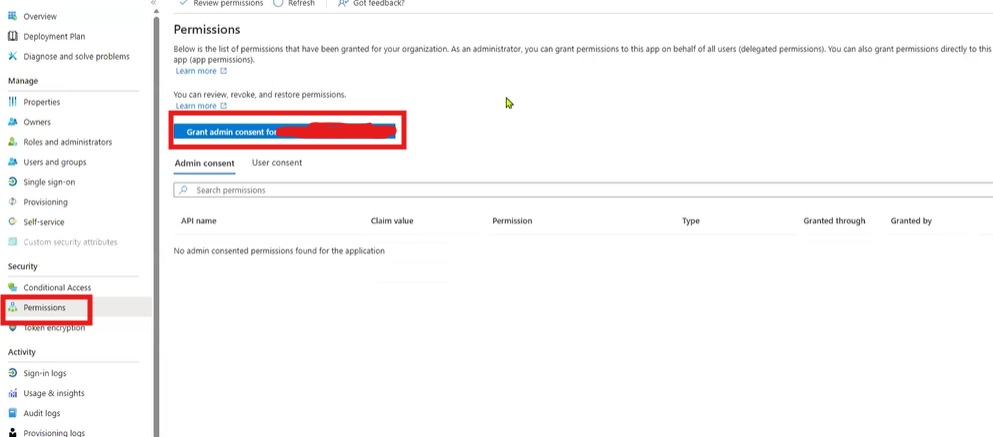 Click Grant admin consent for [Company Name].