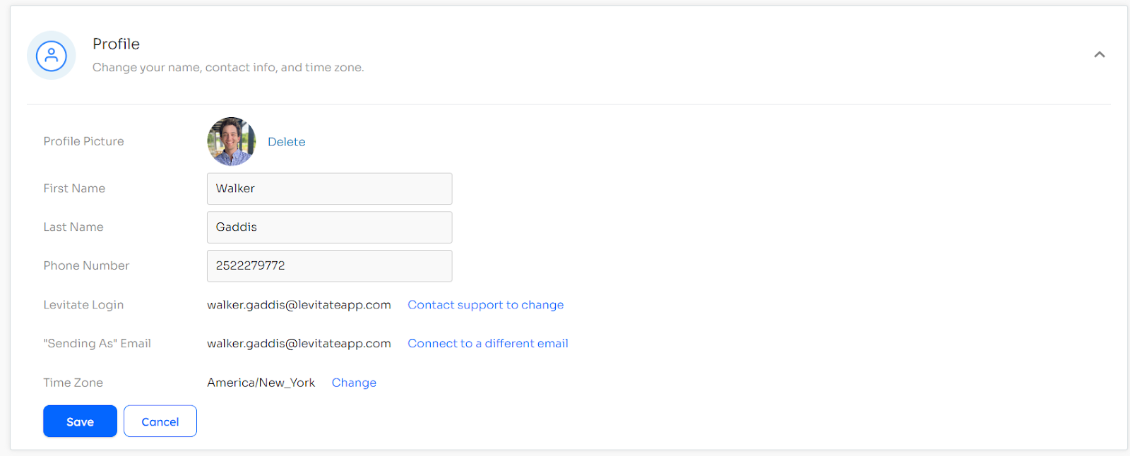 - Open the contact’s profile in Levitate