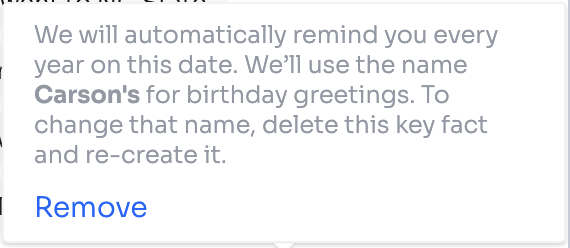 And it'll show as a Key Fact— that will also show on the Upcoming Birthdays dashboard card when it's within 45 days of the birthdate
