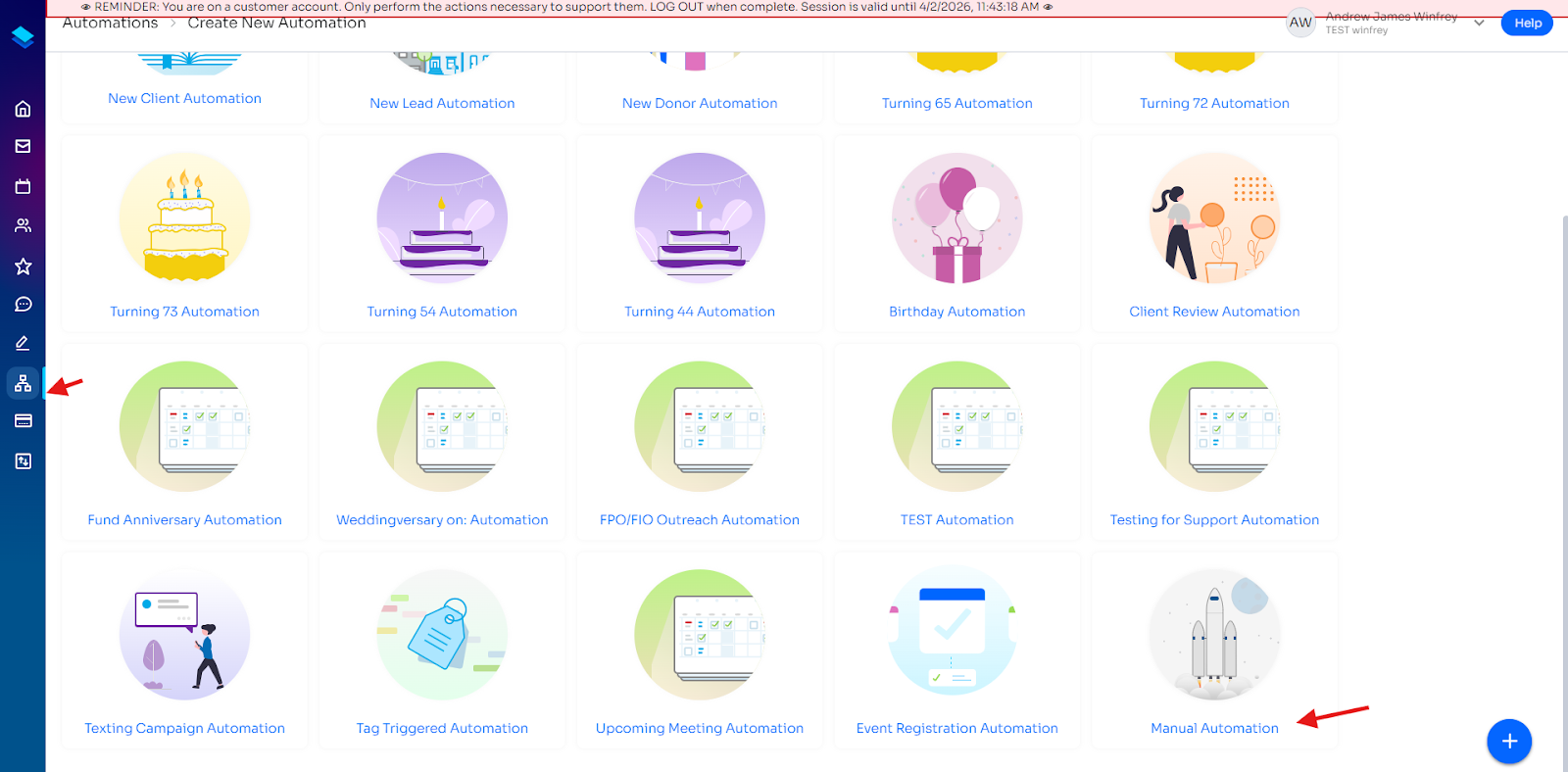 - Click Create New, then select Manual Automation