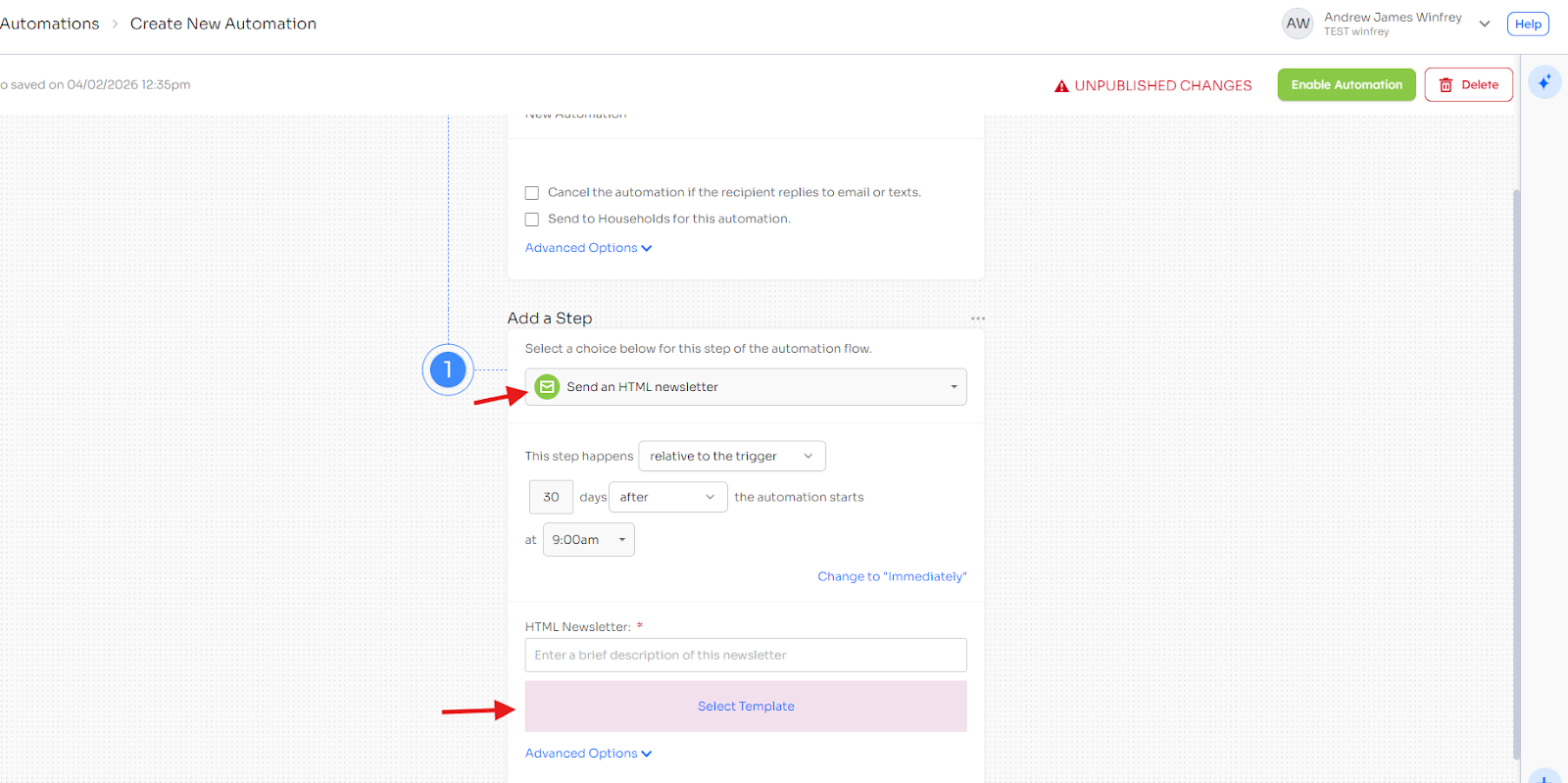 This will allow the HTML newsletter to be sent as part of your automation workflow.